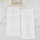 This elegant wedding program features the phrase "The Wedding of" in stunning gold calligraphy against a classic white background. Customisable with your names, wedding date, and ceremony details in bold gold lettering, the program offers a luxurious and timeless look. The reverse side of the program beautifully lists the names of your bridal party, adding a personal touch to your celebration. With its modern, simple, and elegant design, this wedding program is perfect for both formal and casual weddings, making it a versatile choice for any season. Elevate your wedding day with this stylish, sophisticated detail.