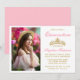 Modern Elegant Quinceanera Invitation with Gold Crown and Photo - Pink Blush