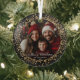 Modern Elegant Gold Glitter Christmas Family Photo Glass Tree Decoration