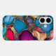 Modern elegant gold marble stone iPhone 16 case. This stylish iPhone 16 case showcases your name in a beautiful calligraphy script, set against a sophisticated blue,  red, purple, pink and gold marble design. A perfect personalised gift for birthdays, Mother's Day, Christmas, or any special occasion for your mum, sister, wife, girlfriend or best friend.