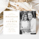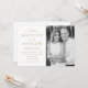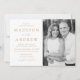Modern photo wedding invitation featuring your wedding details on the left of the design in gold lettering with calligraphy script accents. Personalise the front of the invite by adding your names, wedding details, and vertical engagement photo. The back of the invite provides space for additional text and photos. Designed to coordinate with our Modern Elegance wedding collection.