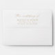 Simple, modern wedding envelopes featuring "the wedding of" displayed in an elegant gold calligraphy script. Personalise the envelope flap with your names and return address.
