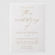 Elevate your wedding announcement with our Modern Elegant Script vellum wedding invitations. This timeless design features your wedding details in luxurious gold lettering, with “the wedding of” elegantly highlighted in graceful calligraphy script on a sheer vellum background. Perfect for any season, these invitations combine classic sophistication with a contemporary flair, making them an ideal choice for couples seeking a refined and stylish look. Personalise your invitations with your names, wedding date, venue, and other essential details to create a stunning keepsake that celebrates your love story.