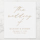Add a timeless touch to your celebration with these Modern Elegant Gold Script Wedding Wine Labels. The design features the phrase “the wedding of” in gold calligraphy on a white background. Personalize the labels with your names, wedding date, and location. A simple yet luxurious choice for wedding receptions.