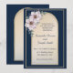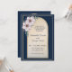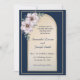 Modern elegant navy blue wedding invitation with the golden frame and roses.