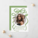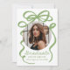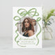 Celebrate your graduate’s achievement with this elegant graduation announcement, featuring a bold green bow and ribbon design on a white background. The graduate’s circular photo is beautifully framed by the bow, while "Graduate" is displayed in a stylish handwritten green script. Personalise with the graduate’s name, school, and graduation year for a meaningful and timeless touch. The back includes an additional photo and space for a custom message, making this design perfect for high school and college graduates. Share this special milestone with a fresh and sophisticated keepsake!