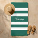 Personalized Modern Elegant Green Stripes Pattern Name Beach Towel.