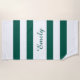 Modern Elegant Green White Stripes Pattern Name Beach Towel