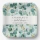 Elevate your bridal shower table setting with this elegant watercolor eucalyptus paper plate. Featuring a delicate wreath of soft green eucalyptus leaves intertwined with gold-accented branches, this design exudes natural beauty and refined sophistication. The modern calligraphy and classic serif typography add a stylish touch, making it a perfect fit for rustic, boho, or minimalist-themed celebrations. Crafted for both functionality and aesthetic appeal, this personalised plate enhances your event décor while making cleanup effortless. Ideal for weddings, bridal showers, and special gatherings.