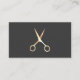 Elegant customisable business card template with faux gold scissors icon and dark grey background. Perfect for hair stylists, hair salons.