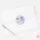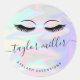 Gorgeous eyelash extensions round sticker design featuring colourful faux holographic texture, lashes and elegant calligraphy font.