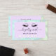 Gorgeous eyelash extensions loyalty card design featuring colourful faux holographic texture, violet colour block and elegant calligraphy font.