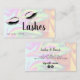 Gorgeous lashes & brows business card design featuring colorful faux holographic texture, lashes and elegant calligraphy font.