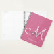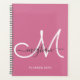 Modern, trendy girly hot pink and white script custom personalised name and monogrammed planner. This simple elegant design features a first name template in cursive hand lettering font with swashes in grey and a huge hand-written monogram initial script in white colour on hot pink, or deep pink background. This feminine, pretty notebook is a perfect gift idea for business, professional, school, birthday party, wedding and any party or occasion for someone that like girly and modern styles.