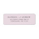 Elegant wedding return address labels featuring the couple's names separated by the word "and" featured in a black calligraphy script on a light lavender purple background. Personalise the modern wedding return address labels with your address below. The labels are perfect to use for weddings, bridal showers, and other special events.