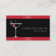 Stylish, simple yet elegant profile or business card for bars or bartenders. The design features a white martini cocktail glass silhouette with satin red olive and stars on a black background with red gradient borders top and bottom. Customisable name and title on the front and contact information on the back. Stylish and classy design for women. Other colours available on request. For custom requests please use the store contact link above.