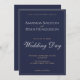 Modern and elegant midnight blue wedding invitation // This simple modern wedding invitation is great to invite your guests. The background is dark midnight blue with a thin border. The text is a white and golden modern script. You can easily customise all the text - personalise it with the bride`s name, groom`s name, date and time, location, and change or erase any text on the invite. The back side is in dark blue colour. This invitation goes with other items in the Yellow rose Midnight blue wedding collection - you can find it bellow this invite.