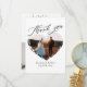 Modern Script Minimalist Love Heart Photo Wedding Thank You Card: add two of your own photos: one landscape photo for the front, (it is best if you are both centred in the photo so that you both appear in the heart-shaped design), and a portrait photo for the back. A customisable message is also drafted on the back, adjust it to make it your own.