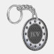 Modern Elegant Monogram Black and Grey Striped Key Ring