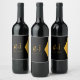 Modern Elegant Monogram Gold Black Faux Foil Wine Label