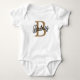 The Modern Elegant Monogram Name Black Gold Script Baby Bodysuit combines chic design with comfort for little ones. This bodysuit features a sleek black fabric adorned with a sophisticated gold script monogram, making it a stylish choice for any occasion. It’s crafted from soft, breatheable material to ensure that babies stay comfortable while looking adorable. Ideal for both casual wear and special events, this bodysuit adds a touch of elegance to your baby's wardrobe.