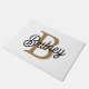 Modern Elegant Monogram Name Black Gold Script Doormat