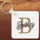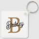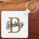Modern Elegant Monogram Name Black Gold Script Key Ring