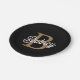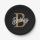 Modern Elegant Monogram Name Black Gold Script Paper Plate