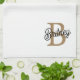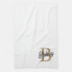 Modern Elegant Monogram Name Black Gold Script Tea Towel
