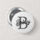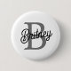 Modern Elegant Monogram Name Black Grey Script 6 Cm Round Badge