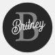 Modern Elegant Monogram Name Black Grey Script Classic Round Sticker