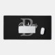 Modern Elegant Monogram Name Black Grey Script Desk Mat