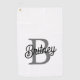 Modern Elegant Monogram Name Black Grey Script Golf Towel