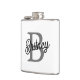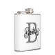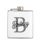 Modern Elegant Monogram Name Black Grey Script Hip Flask