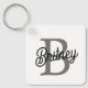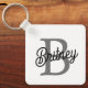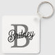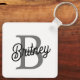 Modern Elegant Monogram Name Black Grey Script Key Ring