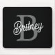 Modern Elegant Monogram Name Black Grey Script Mouse Pad