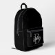 Modern Elegant Monogram Name Black Grey Script Printed Backpack
