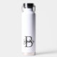 Modern Elegant Monogram Name Black Grey Script Water Bottle