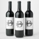Modern Elegant Monogram Name Black Grey Script Wine Label