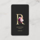 Modern Elegant Monogram R Floral Black Gold Business Card