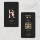 Modern Elegant Monogram R Floral Black Gold Business Card with QR code. Please let me know by DM if you have any questions or anything.
