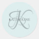Modern Elegant Monogram Script Aqua Blue Classic Round Sticker