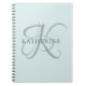 Modern Elegant Monogram Script Aqua Blue Notebook