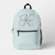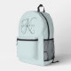 Modern Elegant Monogram Script Aqua Blue Printed Backpack