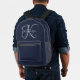 Modern Elegant Monogram Script Navy Blue Printed Backpack