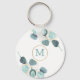 Modern Elegant Monogrammed Eucalyptus Gold Key Ring