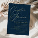Simple couples shower invitations featuring "Couple's Shower" displayed in a gold foil calligraphy script with a navy background. Personalise the navy and gold foil couple's shower invitations with the couple's names and shower details below. The modern wedding shower invite reverses to display a solid navy background.