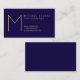 Modern Elegant Navy Blue and Gold Monogram Business Card featuring large monogram and your information in modern font style.