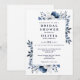 Modern Elegant Navy Blue Floral Bridal Shower Invitation