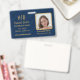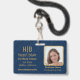 Modern Elegant Navy Blue Gold Monogram Squares ID Badge